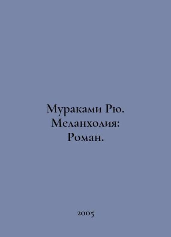 Murakami Ryu. Melancholia: A Novel. In Russian /Murakami Ryu. Melankholiya: Roman. Series: RedFish Extra. Translated by I.M. Svetlov. S.Pb.Amphora 2005. You are welcome to reach out to us for a detailed description of the copies currently available. SKUalb11829f406905eca6.