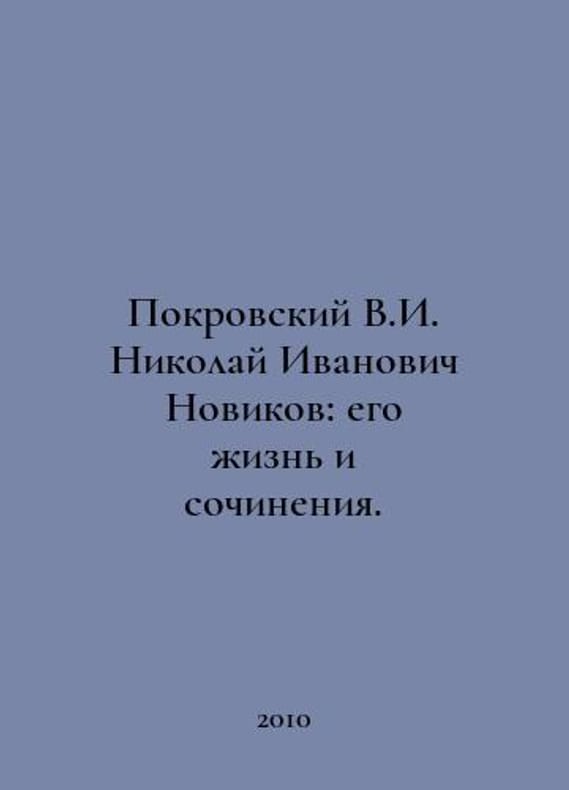 Pokrovsky V.I. Nikolai Ivanovich Novikov: His Life and Works. In Russian /Pokrovskiy V.I. Nikolay Ivanovich Novikov: ego zhizn i sochineniya. M. GPIB 2010. You are welcome to reach out to us for a detailed description of the copies currently available. Delivery of this book may take longer than usual including extended processing and pre-shipping time, no expedited shipping is available. Please advise us if you have a set date or a deadline to receive your order.SKUalb11d4214c4c88ab39