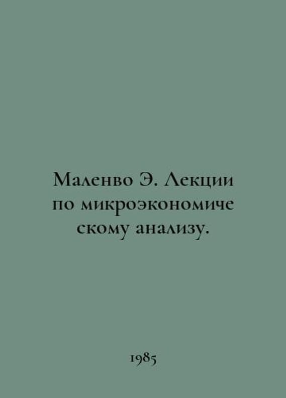 Malenvo E. Lectures on Microeconomic Analysis. In Russian /Malenvo E. Lektsii po mikroekonomicheskomu analizu. Translation from French series: Economic and Mathematical Library. M. Science. 1985.You are welcome to reach out to us for a detailed description of the copies currently available. SKUalb11dda38196f80109.