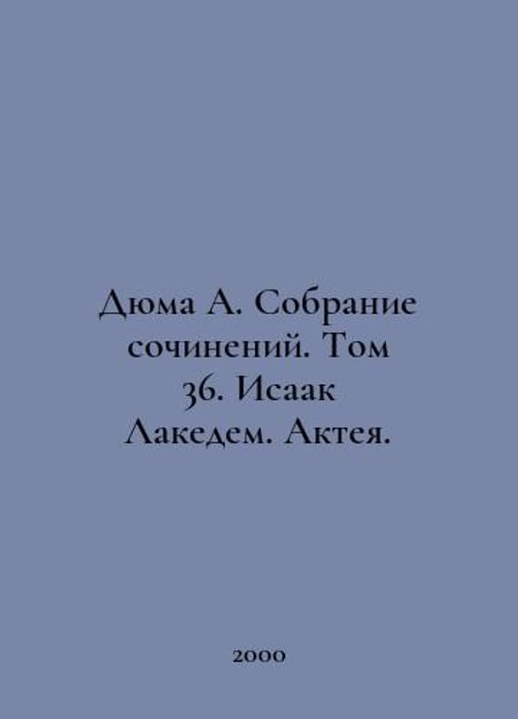 Dumas A. Collection of essays. Volume 36. Isaac Lakedem. Actea. In Russian /Dyuma A. Sobranie sochineniy. Tom 36. Isaak Lakedem. Akteya. Moscow Art-Business Center. 2000. You are welcome to reach out to us for a detailed description of the copies currently available. Delivery of this book may take longer than usual including extended processing and pre-shipping time, no expedited shipping is available. Please advise us if you have a set date or a deadline to receive your order.SKUalb1257533d1adb9c16
