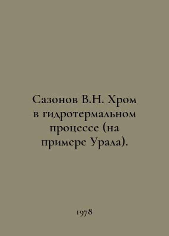 Sazonov V.N. Chromium in the Hydrothermal Process (on the example of the Urals). In Russian /Sazonov V.N. Khrom v gidrotermalnom protsesse (na primere Urala). M. Nauka. 1978..You are welcome to reach out to us for a detailed description of the copies currently available. Delivery of this book may take longer than usual including extended processing and pre-shipping time, no expedited shipping is available. Please advise us if you have a set date or a deadline to receive your order. SKUalb129dfaec26ebe741