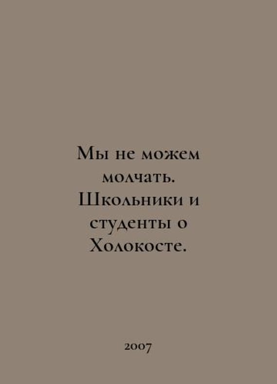 We cannot remain silent. Pupils and students about the Holocaust. In Russian /My ne mozhem molchat. Shkolniki i studenty o Kholokoste. Series: The Russian Holocaust Library. Issue 3. Compiled by D.V. Prokudin. M. Center and the Holocaust Foundation, MIC. 2007. You are welcome to reach out to us for a detailed description of the copies currently available. Delivery of this book may take longer than usual including extended processing and pre-shipping time, no expedited shipping is available. Please advise us if you have a set date or a deadline to receive your order.SKUalb1358635f95cc5170