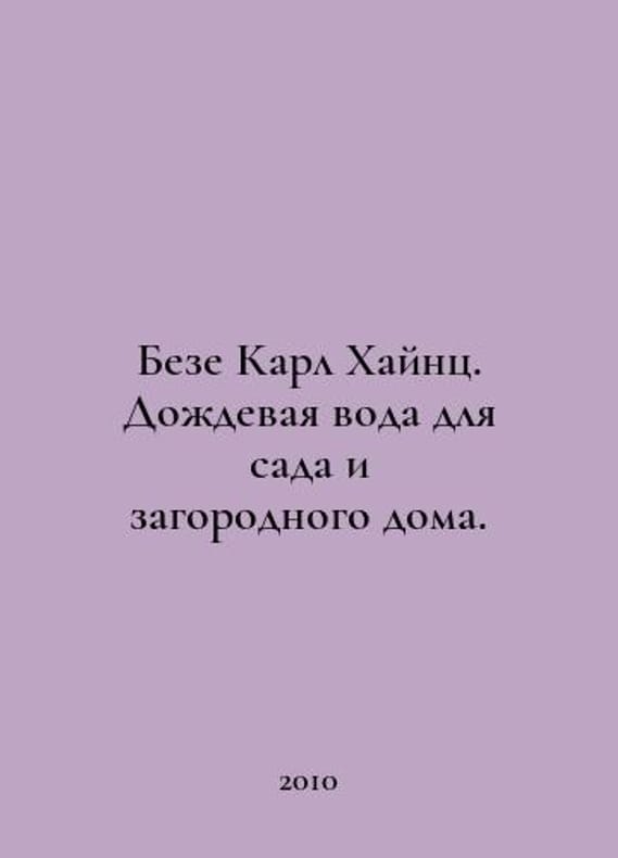 Without Karl Heinz. Rainwater for the garden and country house. In Russian /Beze Karl Khaynts. Dozhdevaya voda dlya sada i zagorodnogo doma. SPB BCV 2010.You are welcome to reach out to us for a detailed description of the copies currently available. SKUalb139a8d6da7ed8120.