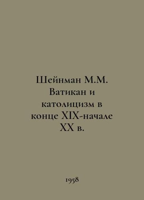 Scheinman M.M. Vatican and Catholicism in the late nineteenth and early twentieth centuries In Russian /Sheynman M.M. Vatikan i katolitsizm v kontse XIX-nachale XX v. Acad. of Sciences of the USSR. In History. Moscow Publishing House of the Academy of Sciences of the USSR. 1958. You are welcome to reach out to us for a detailed description of the copies currently available. SKUalb1469f9132b08d1f2.