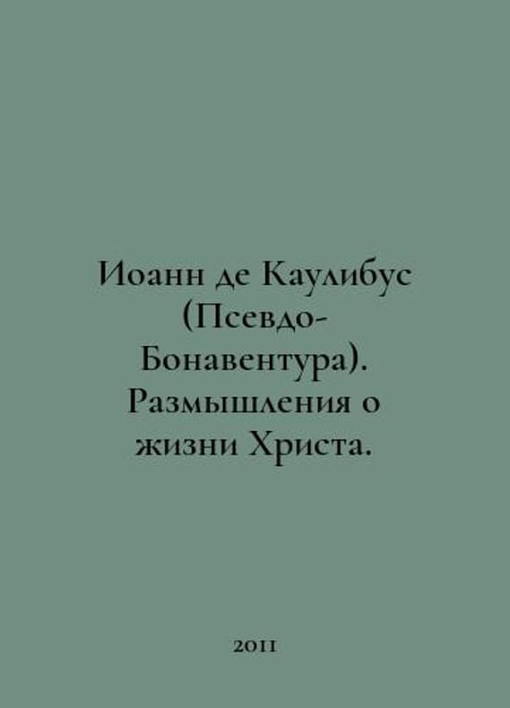 John de Caulibus (Pseudo-Bonaventura). Reflections on the Life of Christ. In Russian /Ioann de Kaulibus (Psevdo-Bonaventura). Razmyshleniya o zhizni Khrista. M.: St. Thomas Institute of Philosophy, Theology and History, 2011..You are welcome to reach out to us for a detailed description of the copies currently available. Delivery of this book may take longer than usual including extended processing and pre-shipping time, no expedited shipping is available. Please advise us if you have a set date or a deadline to receive your order. SKUalb147ec66f937ac7a5