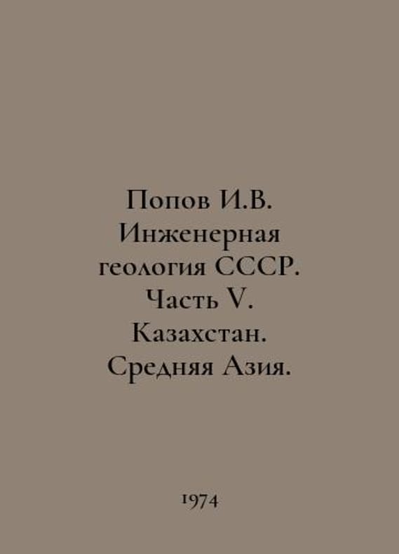 Popov I.V. Engineering Geology of the USSR. Part V. Kazakhstan. Central Asia. In Russian /Popov I.V. Inzhenernaya geologiya SSSR. Chast V. Kazakhstan. Srednyaya Aziya. Textbook for Moscow State University, Moscow State University Publishing House 1974..You are welcome to reach out to us for a detailed description of the copies currently available. Delivery of this book may take longer than usual including extended processing and pre-shipping time, no expedited shipping is available. Please advise us if you have a set date or a deadline to receive your order. SKUalb14868f550ba8a374