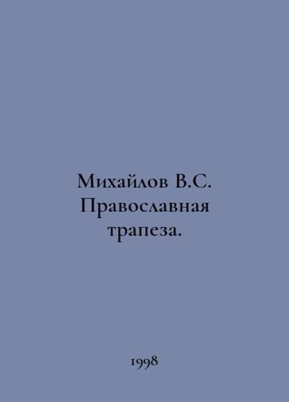 Mikhailov V.S. Orthodox Meal. In Russian /Mikhaylov V.S. Pravoslavnaya trapeza. Series: Orthodox Russia. M. Terra-Book Club 1998..You are welcome to reach out to us for a detailed description of the copies currently available. Delivery of this book may take longer than usual including extended processing and pre-shipping time, no expedited shipping is available. Please advise us if you have a set date or a deadline to receive your order. SKUalb152ed6b57dac7a30