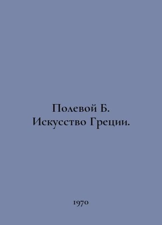 Field B. Greek Art. In Russian /Polevoy B. Iskusstvo Gretsii. Ancient World M Art 1970. You are welcome to reach out to us for a detailed description of the copies currently available. SKUalb15501190a64cee77.