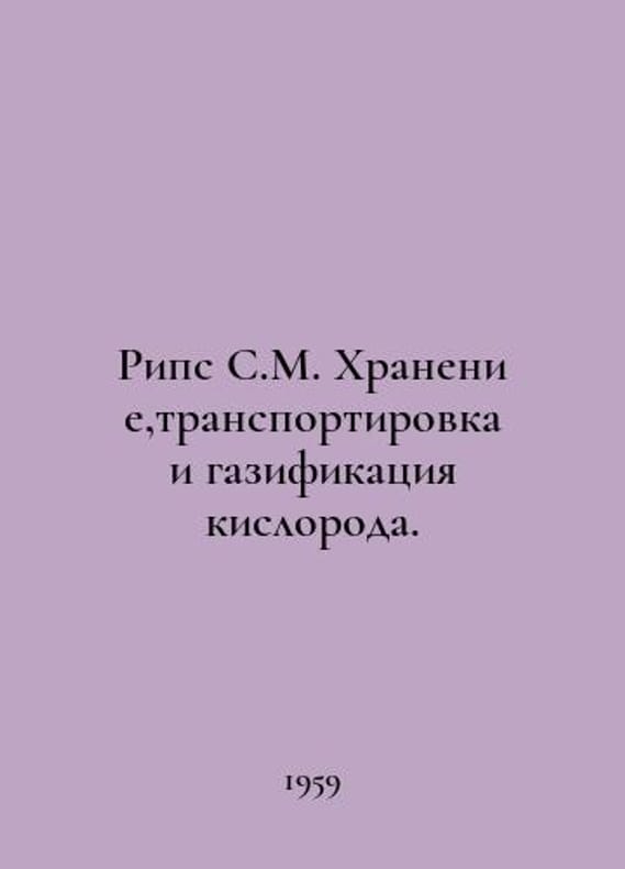 Rips C.M. Oxygen Storage, Transport and Gasification. In Russian /Rips S.M. Khranenie,transportirovka i gazifikatsiya kisloroda. M. Mashgiz. 1959..You are welcome to reach out to us for a detailed description of the copies currently available. Delivery of this book may take longer than usual including extended processing and pre-shipping time, no expedited shipping is available. Please advise us if you have a set date or a deadline to receive your order. SKUalb179494f61ef522a3
