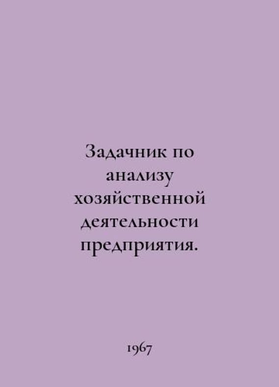 Business Analysis Task Force. In Russian /Zadachnik po analizu khozyaystvennoy deyatelnosti predpriyatiya. Textbook M. 1967.You are welcome to reach out to us for a detailed description of the copies currently available. SKUalb18097e3ae9629775.