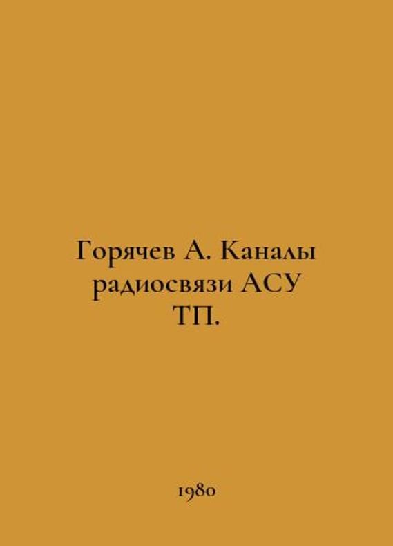 Hotyachev A. Radio communication channels of ACS TA. In Russian /Goryachev A. Kanaly radiosvyazi ASU T M Communications 1980. You are welcome to reach out to us for a detailed description of the copies currently available. SKUalb19514f6ee6403d2a.