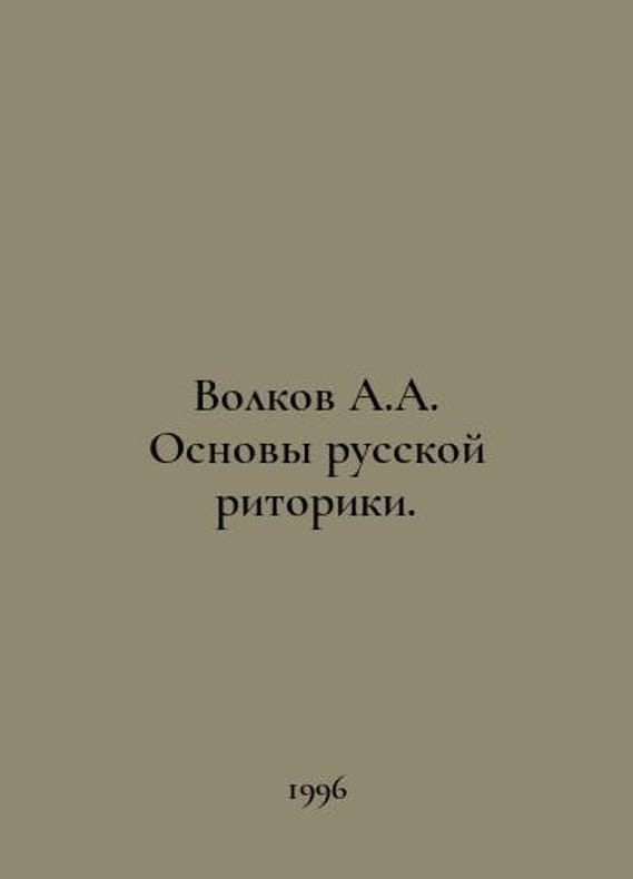 Volkov A.A. Basics of Russian Rhetoric. In Russian /Volkov A.A. Osnovy russkoy ritoriki. Moscow University Publishing House. 1996. You are welcome to reach out to us for a detailed description of the copies currently available. SKUalb1a8d9cad05f82eec.