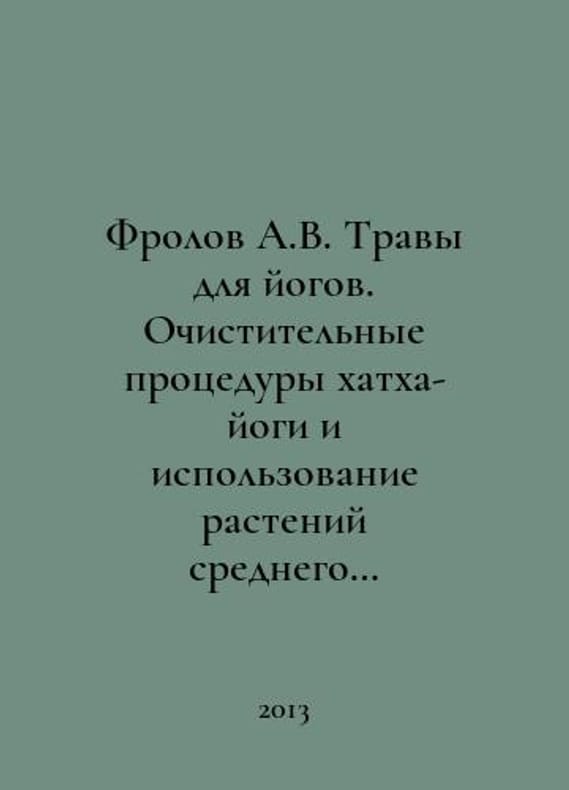 Frolov A.V. Herbs for Yogis. Purifying Hatha Yoga Treatments and the Use of Middle Climate Belt Plants in Different Areas of Yogi Practice. In Russian /Frolov A.V. Travy dlya yogov. Ochistitelnye protsedury khatkha-yogi i ispolzovanie rasteniy srednego klimaticheskogo poyasa v razlichnykh napravleniyakh yogicheskoy praktiki. Series: Samadhi. M., Orientalia. 2013..You are welcome to reach out to us for a detailed description of the copies currently available. Delivery of this book may take longer than usual including extended processing and pre-shipping time, no expedited shipping is available. Please advise us if you have a set date or a deadline to receive your order. SKUalb1ab25f392e5e96c2