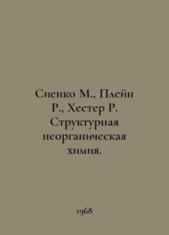 Sienko M., Plain R., Hester R. Structural Inorganic Chemistry. In Russian /Sienko M., Pleyn R., Khester R. Strukturnaya neorganicheskaya khimiya. M. Peace 1968..You are welcome to reach out to us for a detailed description of the copies currently available. Delivery of this book may take longer than usual including extended processing and pre-shipping time, no expedited shipping is available. Please advise us if you have a set date or a deadline to receive your order. SKUalb1bbacb838dc40fc0