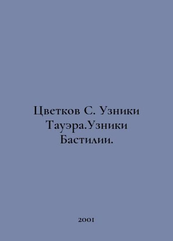 Flowers C. Prisoners of the Tower. Prisoners of the Bastille. In Russian /Tsvetkov S. Uzniki Tauera.Uzniki Bastilii. M. Armada Press. 2001. You are welcome to reach out to us for a detailed description of the copies currently available. SKUalb1cc1f0227b0e31e2.