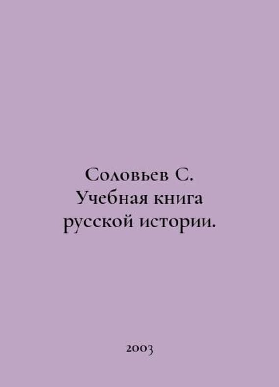 Solovyov S. A textbook of Russian history. In Russian /Solovev S. Uchebnaya kniga russkoy istorii. ACT M Historic Library 2003. You are welcome to reach out to us for a detailed description of the copies currently available. Delivery of this book may take longer than usual including extended processing and pre-shipping time, no expedited shipping is available. Please advise us if you have a set date or a deadline to receive your order.SKUalb1ce70d7758c2bd17