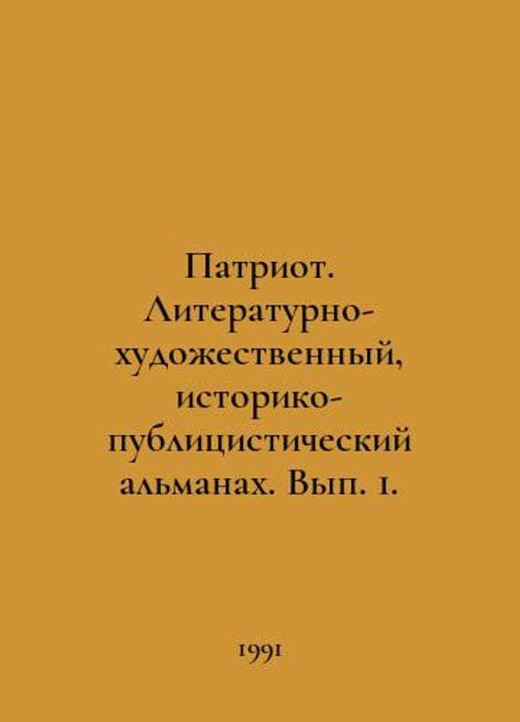 Patriot. Literary-artistic, historical-journalistic almanac. Volume 1. In Russian /Patriot. Literaturno-khudozhestvennyy, istoriko-publitsisticheskiy almanakh. Vyp. 1. M Patriot 1991. You are welcome to reach out to us for a detailed description of the copies currently available. Delivery of this book may take longer than usual including extended processing and pre-shipping time, no expedited shipping is available. Please advise us if you have a set date or a deadline to receive your order.SKUalb1ea8de2139269311