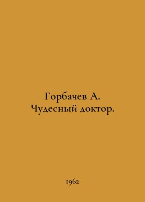 Gorbachev A. The Miracle Doctor. In Russian /Gorbachev A. Chudesnyy doktor. Orenburg 1962. You are welcome to reach out to us for a detailed description of the copies currently available. Delivery of this book may take longer than usual including extended processing and pre-shipping time, no expedited shipping is available. Please advise us if you have a set date or a deadline to receive your order.SKUalb1fbfd605fe083868