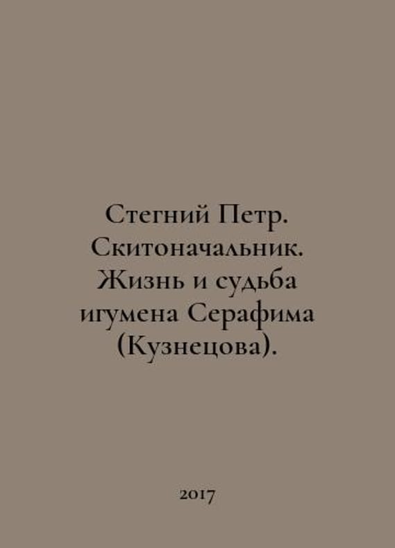 Stegniy Peter. The Higumen. The Life and Fate of Abbot Seraphim (Kuznetsov). In Russian /Stegniy Petr. Skitonachalnik. Zhizn i sudba igumena Serafima (Kuznetsova). M Indrik. 2017. You are welcome to reach out to us for a detailed description of the copies currently available. Delivery of this book may take longer than usual including extended processing and pre-shipping time, no expedited shipping is available. Please advise us if you have a set date or a deadline to receive your order.SKUalb1ffff62ab04c5717