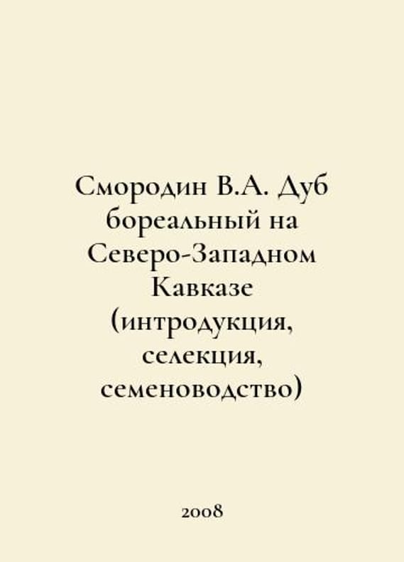 Smorodin V.A. Boreal Oak in the North-West Caucasus (introduction, selection, seed farming) In Russian /Smorodin V.A. Dub borealnyy na Severo-Zapadnom Kavkaze (introduktsiya, selektsiya, semenovodstvo) Maykop JSC Polygraphisdant of Adygeya year 2008. You are welcome to reach out to us for a detailed description of the copies currently available. SKUalb206518f80b178fbb.