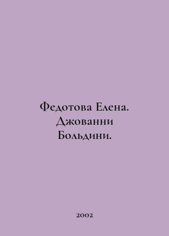 Fedotova Elena. Giovanni Boldini. In Russian /Fedotova Elena. Dzhovanni Boldini. Series: Masters of Painting. M. White City. 2002. You are welcome to reach out to us for a detailed description of the copies currently available. Delivery of this book may take longer than usual including extended processing and pre-shipping time, no expedited shipping is available. Please advise us if you have a set date or a deadline to receive your order.SKUalb21b4958dbb54a9f4