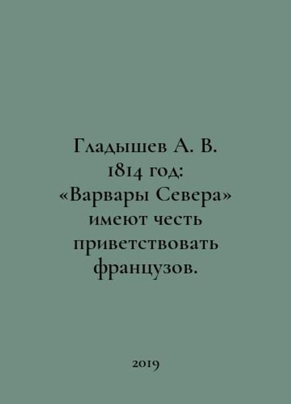 Gladyshev A.V. 1814: The Barbarians of the North have the honour to welcome the French. In Russian /Gladyshev A. V. 1814 god: Varvary Severa imeyut chest privetstvovat frantsuzov. M. ROSSPEN. 2019. You are welcome to reach out to us for a detailed description of the copies currently available. Delivery of this book may take longer than usual including extended processing and pre-shipping time, no expedited shipping is available. Please advise us if you have a set date or a deadline to receive your order.SKUalb21c3b19125baeb8c