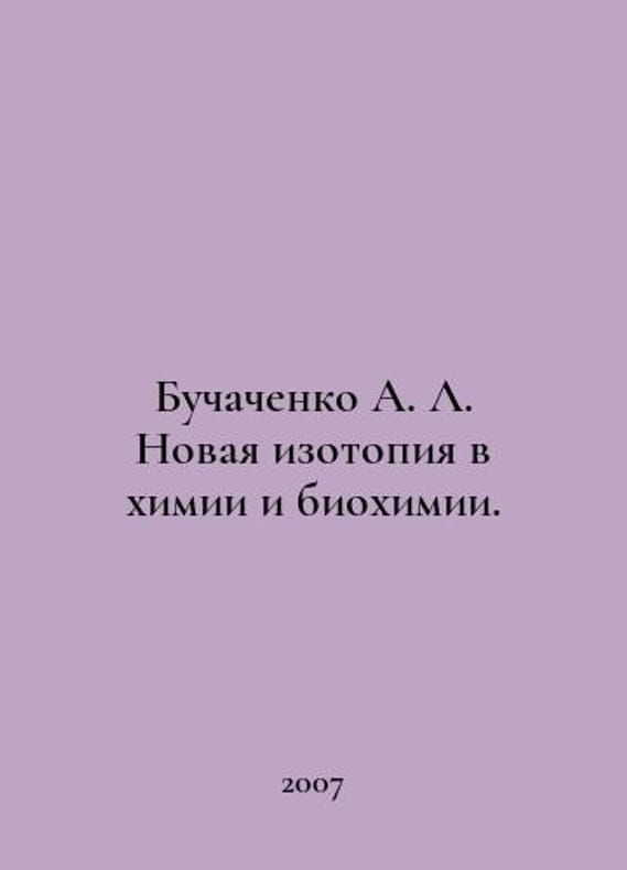 Buchachenko A.L. New isotopy in chemistry and biochemistry. In Russian /Buchachenko A.L. Novaya izotopiya v khimii i biokhimii. Moscow Science 2007..You are welcome to reach out to us for a detailed description of the copies currently available. Delivery of this book may take longer than usual including extended processing and pre-shipping time, no expedited shipping is available. Please advise us if you have a set date or a deadline to receive your order. SKUalbeb51c91d3c328248