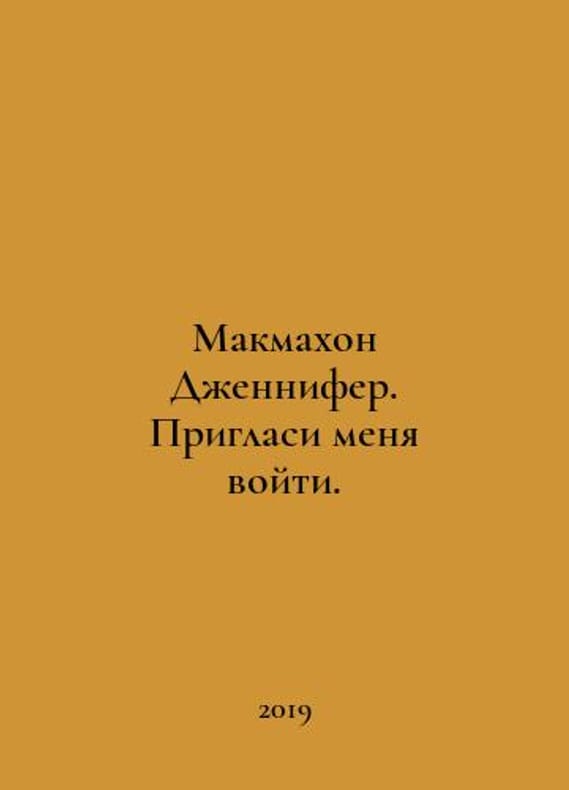 Jennifer McMahon - invite me in. In Russian /Makmakhon Dzhennifer. Priglasi menya voyti. Next Generation Suspense: Jennifer McMahons Bestsellers M: Exmo 2019..You are welcome to reach out to us for a detailed description of the copies currently available. Delivery of this book may take longer than usual including extended processing and pre-shipping time, no expedited shipping is available. Please advise us if you have a set date or a deadline to receive your order. SKUalb24a8f6e75b5c9450