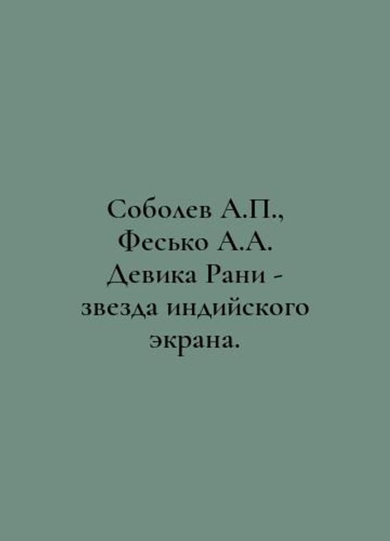 Sobolev A., Fesko A.A. Devika Rani is an Indian screen star. In Russian /Sobolev A., Fesko A.A. Devika Rani - zvezda indiyskogo ekrana. Saint Petersburg. SPbGMISR, 2019 160 p. You are welcome to reach out to us for a detailed description of the copies currently available. Delivery of this book may take longer than usual including extended processing and pre-shipping time, no expedited shipping is available. Please advise us if you have a set date or a deadline to receive your order.SKUalb254c7449d4932ee7