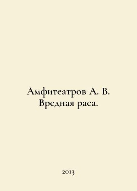 Amphitheatres A. V. Harmful race. In Russian /Amfiteatrov A. V. Vrednaya rasa. Moscow Publishing House V. Sekachev 2013. You are welcome to reach out to us for a detailed description of the copies currently available. Delivery of this book may take longer than usual including extended processing and pre-shipping time, no expedited shipping is available. Please advise us if you have a set date or a deadline to receive your order.SKUalb255ebe12354e76f6