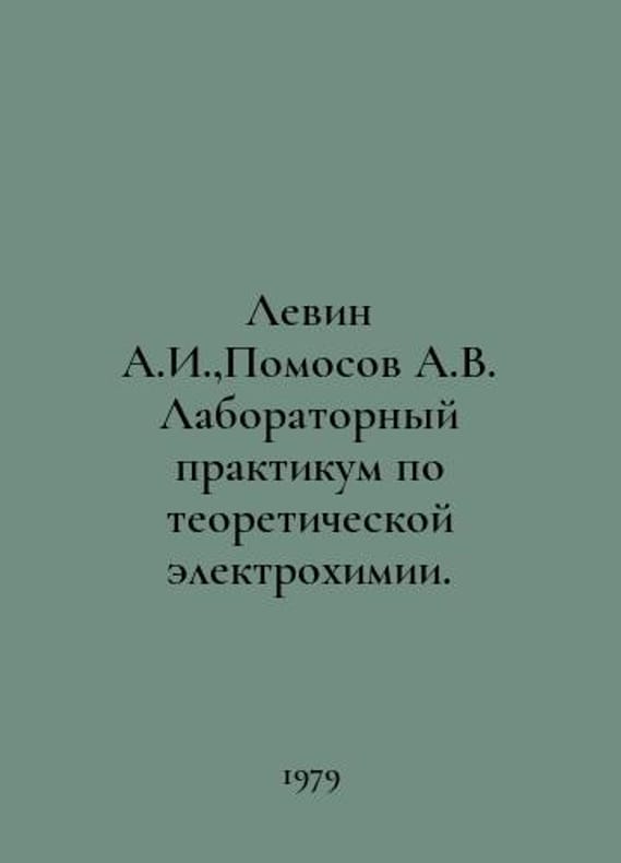 Levin A.I., Pomosov A.V. Laboratory Workshop on Theoretical Electrochemistry. In Russian /Levin A.I.,Pomosov A.V. Laboratornyy praktikum po teoreticheskoy elektrokhimii. A textbook for higher education institutions. Moscow Metallurgy. 1979..You are welcome to reach out to us for a detailed description of the copies currently available. Delivery of this book may take longer than usual including extended processing and pre-shipping time, no expedited shipping is available. Please advise us if you have a set date or a deadline to receive your order. SKUalb26dbff2ce562dfd4