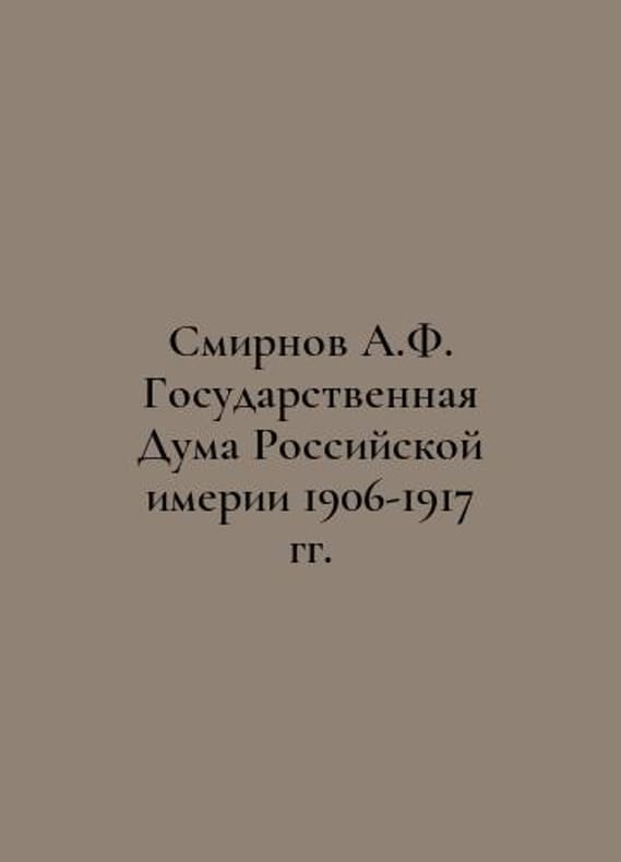 Smirnov A. F. State Duma of the Russian Empire. 1906-1917. In Russian /Smirnov A. F. Gosudarstvennaya Duma Rossiyskoy imperii. 1906-1917 gg. M. Centropolygraph 2021. 720 p. We have thousands of titles and often several copies of each title may be available. Please feel free to contact us for a detailed description of the copies available. SKUalbaf5a73396376eff1.