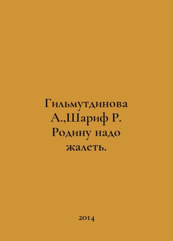 Gilmutdinova A., Sharif R. Motherland should be sorry. In Russian /Gilmutdinova A., Sharif R. Rodinu nado zhalet. Kirov 2014. You are welcome to reach out to us for a detailed description of the copies currently available. Delivery of this book may take longer than usual including extended processing and pre-shipping time, no expedited shipping is available. Please advise us if you have a set date or a deadline to receive your order.SKUalb2780ff69f0758d80