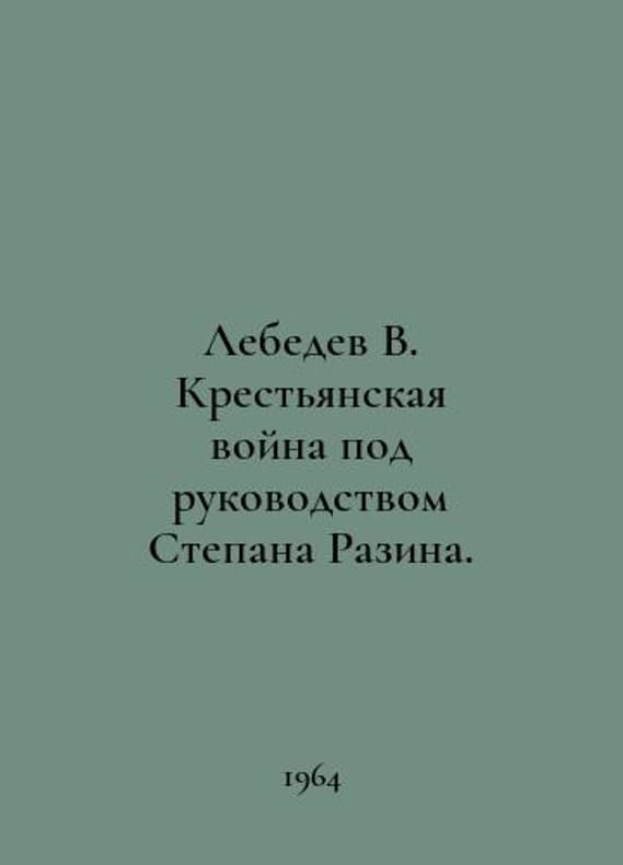 Lebedev V. The Peasant War led by Stepan Razin. In Russian /Lebedev V. Krestyanskaya voyna pod rukovodstvom Stepana Razina. M Enlightenment 1964. You are welcome to reach out to us for a detailed description of the copies currently available. Delivery of this book may take longer than usual including extended processing and pre-shipping time, no expedited shipping is available. Please advise us if you have a set date or a deadline to receive your order.SKUalb27e0d5ff28f45e0b