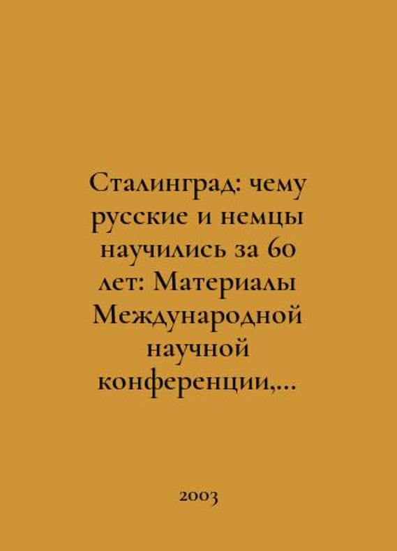 Stalingrad: What Russians and Germans have learned in 60 years: Proceedings of the International Scientific Conference, Volgograd, 3-5 April 2003 Stalingrad: was haben die Russen und die Deutschen nach 60 Jahren gelernt: Materialien der Internationalen wissenschaftlic In Russian /Stalingrad: chemu russkie i nemtsy nauchilis za 60 let: Materialy Mezhdunarodnoy nauchnoy konferentsii, g.Volgograd, 3-5 aprelya 2003 g. Stalingrad: was haben die Russen und die Deutschen nach 60 Jahren gelernt: Materialien der Internationalen wissenschaftlic Proceedings of the Volgograd Center for German Historical Research and the Schriftenreihe des Forschungszentrums fuer Deutsche Geschichte in Wolgograd. Volgograd Volgograd Volgograd Volgograd Volgograd Volgograd Volgograd 2003. You are welcome to reach out to us for a detailed description of the copies currently available. Delivery of this book may take longer than usual including extended processing and pre-shipping time, no expedited shipping is available. Please advise us if you have a set date or a deadline to receive your order.SKUalb285bdbc5e690aa3b