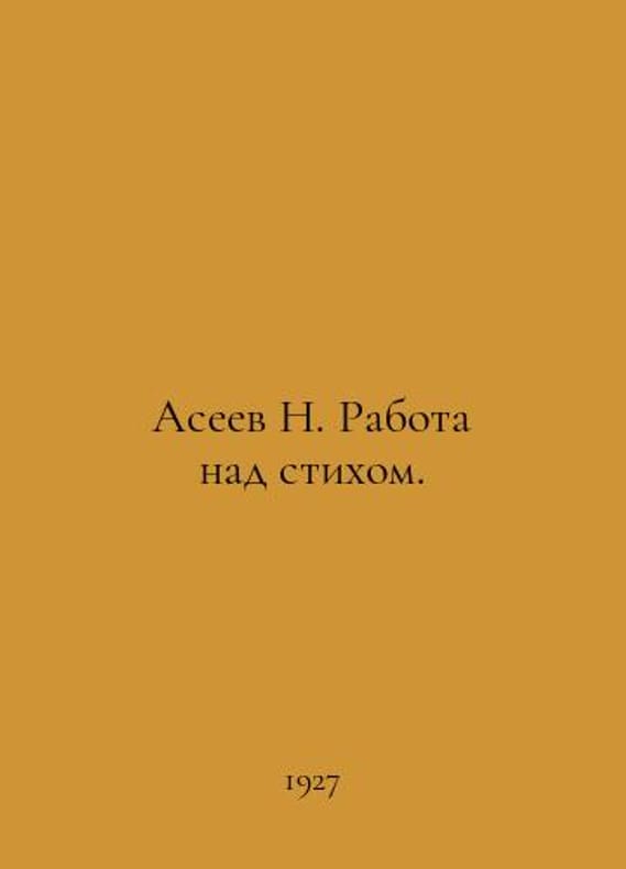 Aseev N. Work on a poem. In Russian /Aseev N. Rabota nad stikhom. L. Priboj 1927. 167s. You are welcome to reach out to us for a detailed description of the copies currently available. Delivery of this book may take longer than usual including extended processing and pre-shipping time, no expedited shipping is available. Please advise us if you have a set date or a deadline to receive your order.SKUalb286e8fde29afd8ab