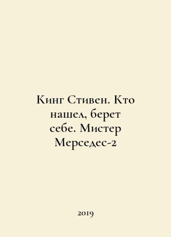 King Stephen. Who found it, takes it. Mr. Mercedes-2 In Russian /King Stiven. Kto nashel, beret sebe. Mister Mersedes-2 M. ACT 2019..You are welcome to reach out to us for a detailed description of the copies currently available. Delivery of this book may take longer than usual including extended processing and pre-shipping time, no expedited shipping is available. Please advise us if you have a set date or a deadline to receive your order. SKUalb289194295710f5ac