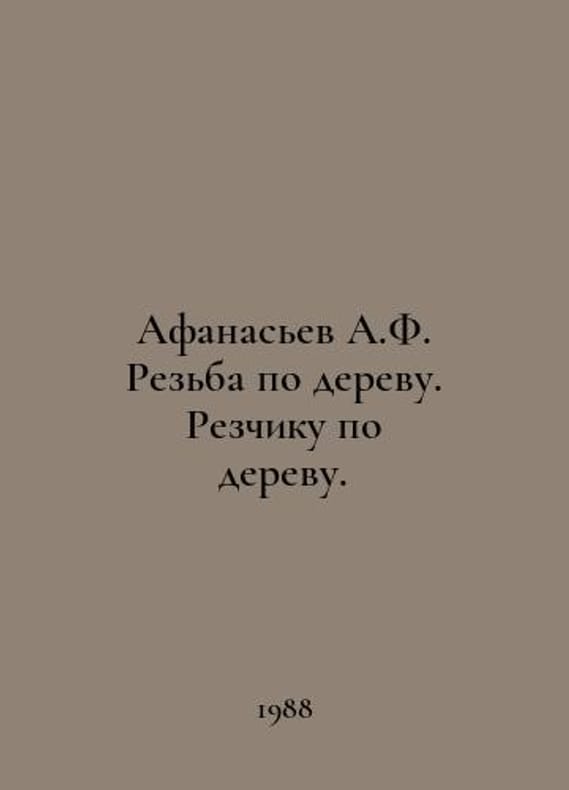 Afanasyev A.F. Wood carving. Wood carver. In Russian /Afanasev A.F. Rezba po derevu. Rezchiku po derevu. Lessons of mastery. M. Culture and traditions. 1988-2001.You are welcome to reach out to us for a detailed description of the copies currently available. SKUalb28dbf8db9b3b1b8d.