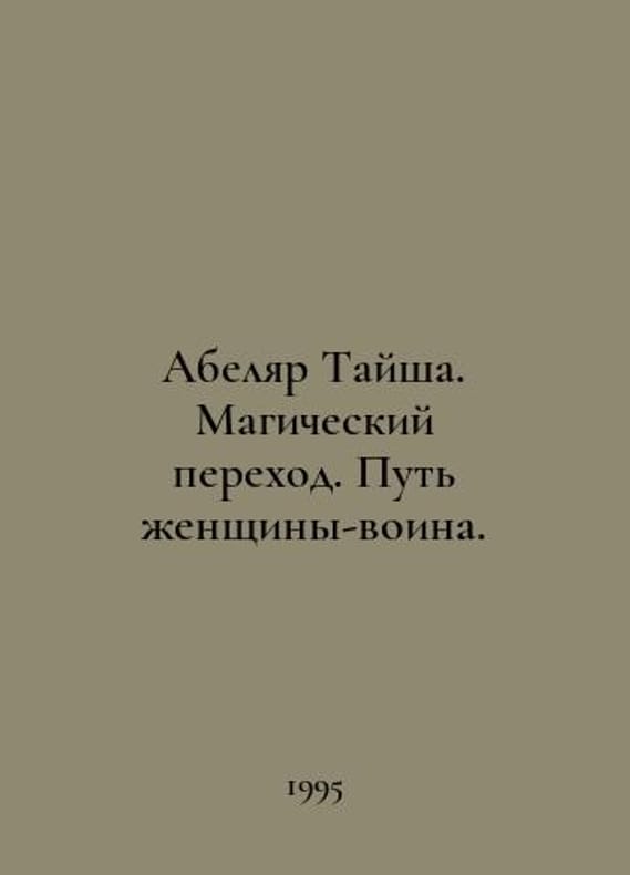 Abelar Taisha. The Magical Transition. The Way of the Warrior Woman. In Russian /Abelyar Taysha. Magicheskiy perekhod. Put zhenshchiny-voina. The introduction of Carlos Castaneda. Kiev. Sofia. 1995.You are welcome to reach out to us for a detailed description of the copies currently available. SKUalb2933852de34866e7.