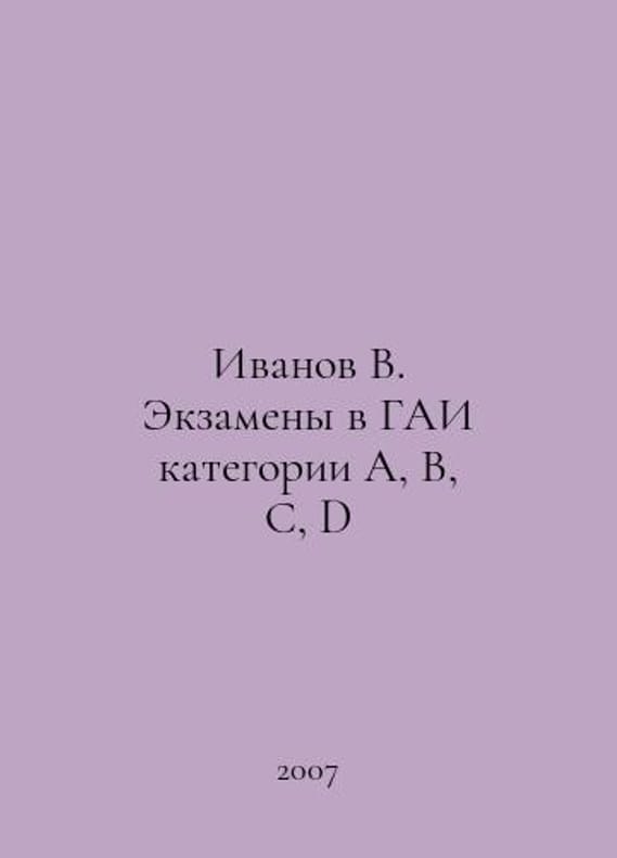 Ivanov V. Examinations in traffic police of categories A, B, C, D In Russian /Ivanov V. Ekzameny v GAI kategorii A, V, S, D Ivanov V. Examinations in traffic police of categories A, B, C, D 2007. You are welcome to reach out to us for a detailed description of the copies currently available. Delivery of this book may take longer than usual including extended processing and pre-shipping time, no expedited shipping is available. Please advise us if you have a set date or a deadline to receive your order.SKUalb29b45658a13e14d9