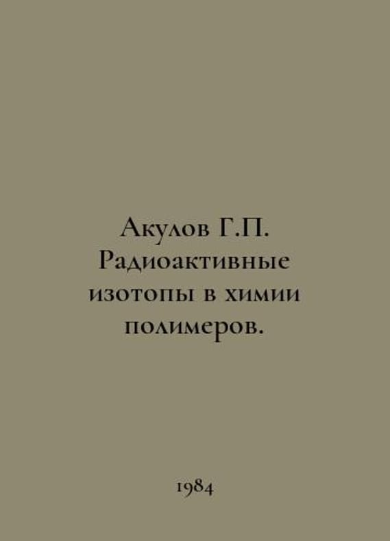 Shark G. Radioactive isotopes in the chemistry of polymers. In Russian /Akulov G. Radioaktivnye izotopy v khimii polimerov. Moscow Energoizdat 1984.You are welcome to reach out to us for a detailed description of the copies currently available. SKUalb29e64e2220386a88.