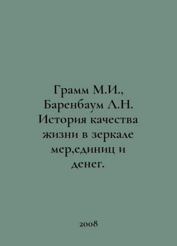 Gramm M.I., Barenbaum L.N. The history of quality of life in the mirror of measures, units, and money. In Russian /Gramm M.I., Barenbaum L.N. Istoriya kachestva zhizni v zerkale mer,edinits i deneg. Helyabinsk Ural Institute of Business 2008. You are welcome to reach out to us for a detailed description of the copies currently available. SKUalb2a4d727ff8a6521c.