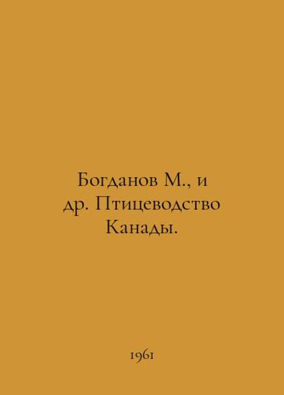 Bogdanov M. et al. Canadas poultry industry. In Russian /Bogdanov M., i dr. Ptitsevodstvo Kanady. M. Ministry of Agriculture of the RSFSR. 1961. You are welcome to reach out to us for a detailed description of the copies currently available. Delivery of this book may take longer than usual including extended processing and pre-shipping time, no expedited shipping is available. Please advise us if you have a set date or a deadline to receive your order.SKUalb2a5f66987cb5d0bc