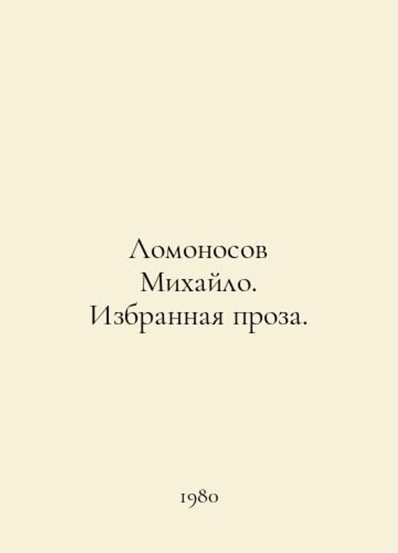 Lomonosov Mikhailo. Selected prose. In Russian /Lomonosov Mikhaylo. Izbrannaya proza. M Soviet Russia 1980 scientific, works, letters, official documents. You are welcome to reach out to us for a detailed description of the copies currently available. Delivery of this book may take longer than usual including extended processing and pre-shipping time, no expedited shipping is available. Please advise us if you have a set date or a deadline to receive your order.SKUalb2a64606be7cd885c