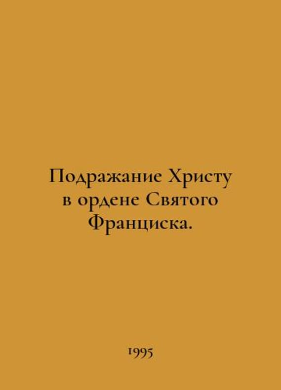 Imitation of Christ in the Order of St. Francis. In Russian /Podrazhanie Khristu v ordene Svyatogo Frantsiska. M 1995..You are welcome to reach out to us for a detailed description of the copies currently available. Delivery of this book may take longer than usual including extended processing and pre-shipping time, no expedited shipping is available. Please advise us if you have a set date or a deadline to receive your order. SKUalb2a7ccd902af0b30e