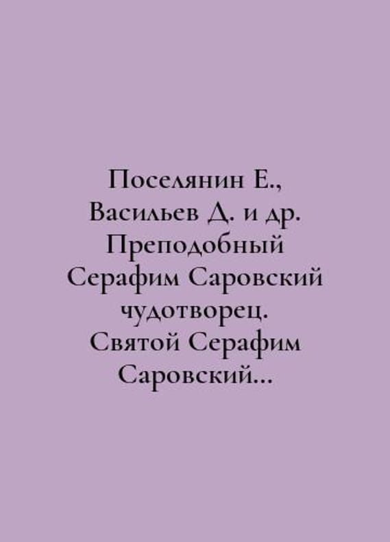 "Poselyanin E., Vasiliev D., and others. St. Seraphim of Sarov is a miracle worker. St. Seraphim of Sarov is a miracle worker In Russian /Poselyanin E., Vasilev D. i dr. Prepodobnyy Serafim Sarovskiy chudotvorets. Svyatoy Serafim Sarovskiy chudotvorets. Starets Serafim pustynnik i zatvornik Sarovskoy obiteli. Svyatyy prepodobnyy Serafim"". 4 izdaniya. The 1st book is a reprint of the 1908 edition..You are welcome to reach out to us for a detailed description of the copies currently available. Delivery of this book may take longer than usual including extended processing and pre-shipping time, no expedited shipping is available. Please advise us if you have a set date or a deadline to receive your order. SKUalb2acbdea58030a9d1"