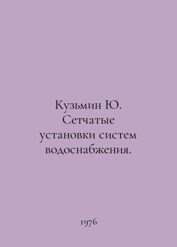 Kuzmin Yu. Netted water supply systems. In Russian /Kuzmin Yu. Setchatye ustanovki sistem vodosnabzheniya. Reference L Stroyizdat 1976. You are welcome to reach out to us for a detailed description of the copies currently available. Delivery of this book may take longer than usual including extended processing and pre-shipping time, no expedited shipping is available. Please advise us if you have a set date or a deadline to receive your order.SKUalb2ad9298112f973ba
