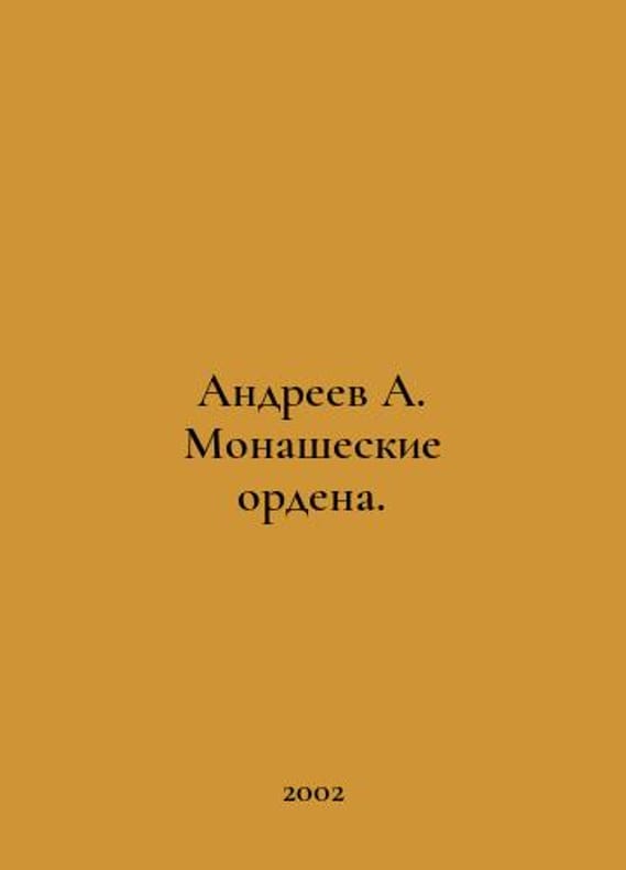 Andreev A.R. Monastic Orders. In Russian /Andreev A.R. Monasheskie ordena. Benedictines, Cistercians, Carmelites, Ioannites, Templars, Teutonians, Franciscans, Augustines, Capuchins, Ursulins, Teatins, Jesuits, and others. We have thousands of titles and often several copies of each title may be available. Please feel free to contact us for a detailed description of the copies available. SKUalb62604f387b49f897.