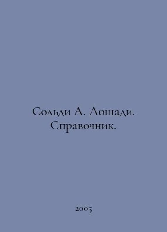 Soldy A. Horses. Reference book. In Russian /Soldi A. Loshadi. Spravochnik. M. AST. 2005. 256s. You are welcome to reach out to us for a detailed description of the copies currently available. Delivery of this book may take longer than usual including extended processing and pre-shipping time, no expedited shipping is available. Please advise us if you have a set date or a deadline to receive your order.SKUalb2b40685ce635cd4d