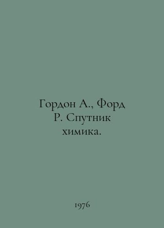 Gordon A., Ford R. Chemist Sputnik. In Russian /Gordon A., Ford R. Sputnik khimika. Moscow MIR 1976. You are welcome to reach out to us for a detailed description of the copies currently available. Delivery of this book may take longer than usual including extended processing and pre-shipping time, no expedited shipping is available. Please advise us if you have a set date or a deadline to receive your order.SKUalb2bbd8a67f66b184c
